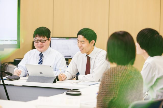 関西支店ではちょっと雑談できる休憩スペースで熱帯魚を観賞できたり、お菓子やコーヒーメーカーなども常備され、仕事の癒やしタイムを過ごせます。清潔なオフィスや働きやすい空間づくりなどの管理を通して、従業員が社内環境の大切さを理解し、互いに協力しあえるような体制づくりを推進しています。